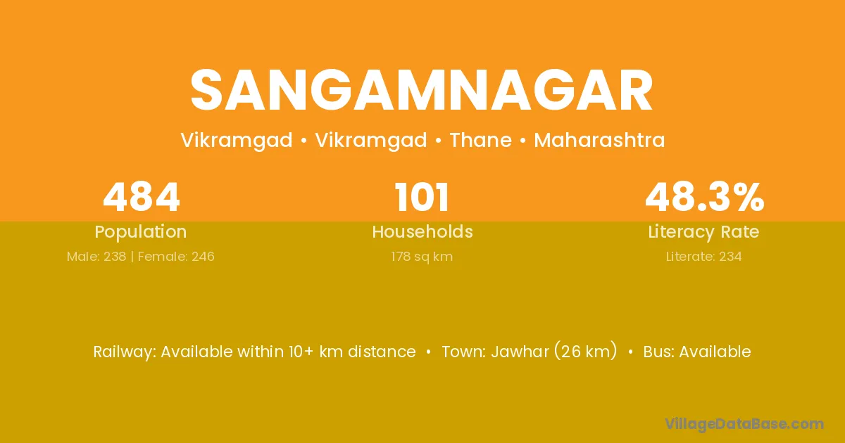 Sangamnagar village has a total population of 484 people, of which 238 are males and 246 are females.
