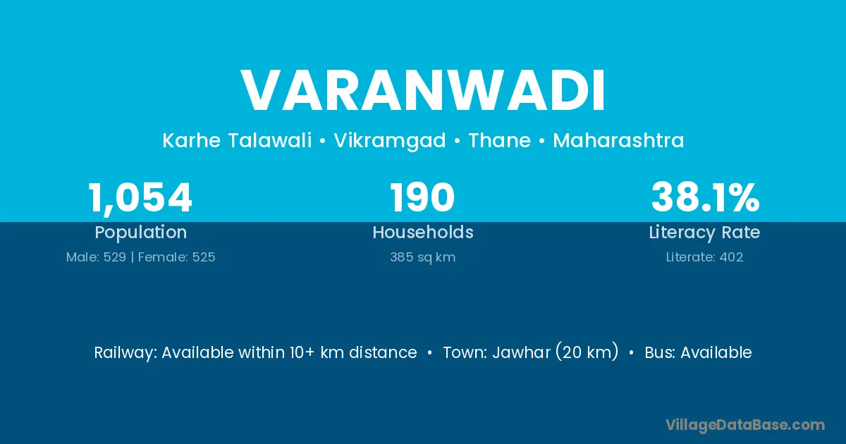 Jawhar (20 km) is the nearest town to Varanwadi village for major economic activities and is located approximately 20 km away.