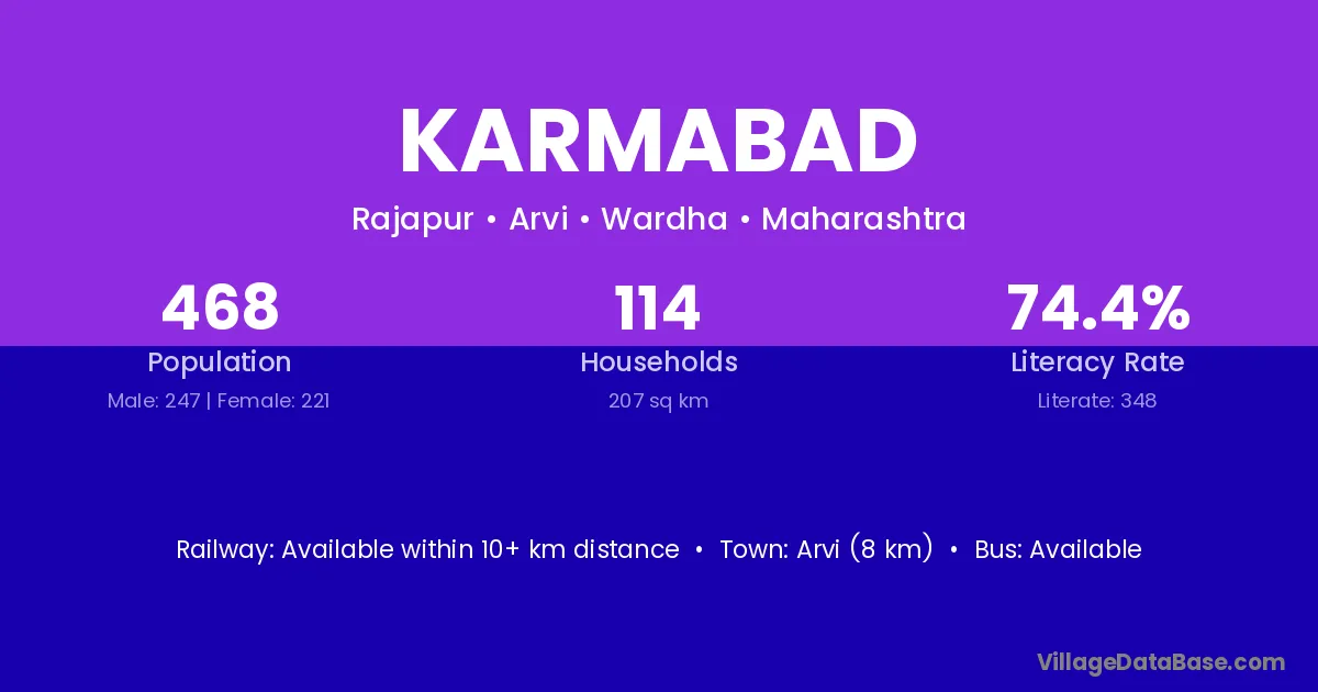 Arvi (8 km) is the nearest town to Karmabad village for major economic activities and is located approximately 8 km away.