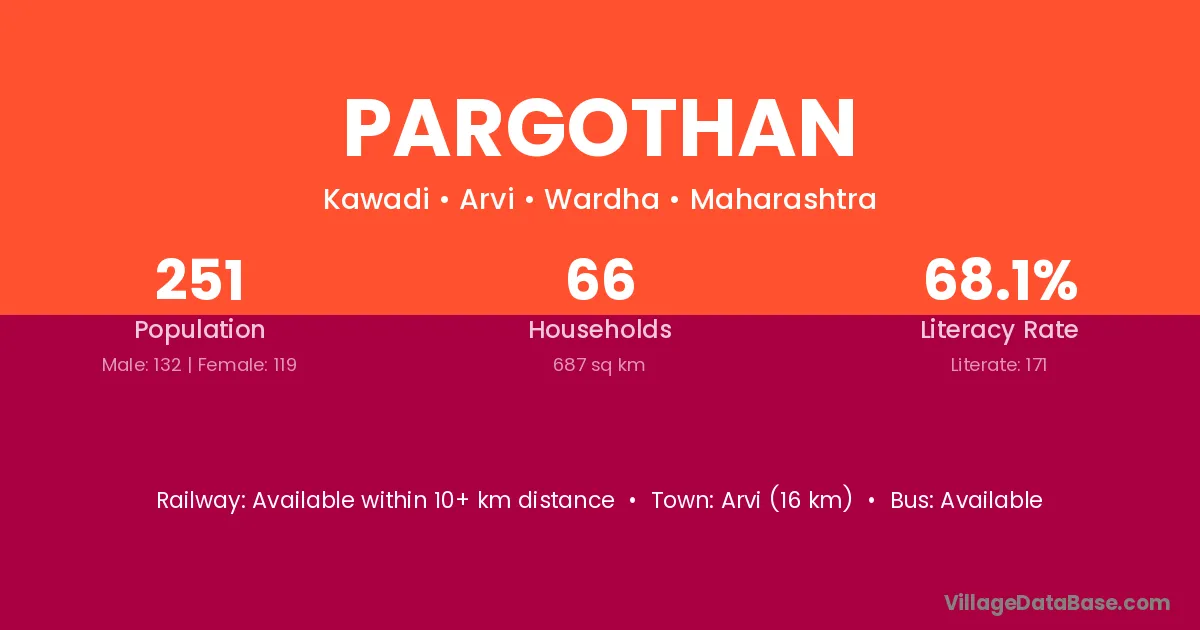 Arvi (16 km) is the nearest town to Pargothan village for major economic activities and is located approximately 16 km away.