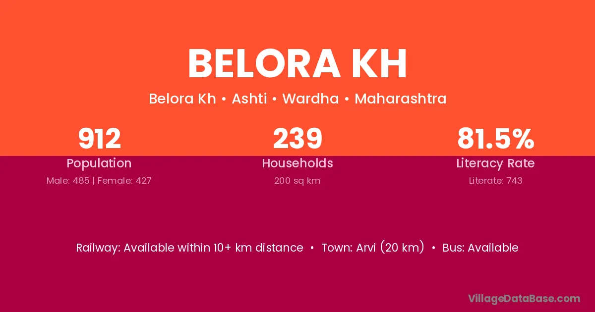 Belora Kh village has a total population of 912 people, of which 485 are males and 427 are females.