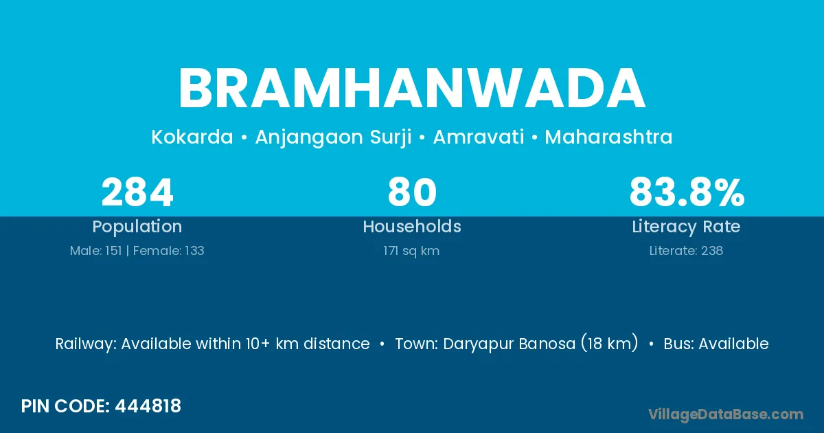 Ashti is the nearest town to Bramhanwada village for major economic activities