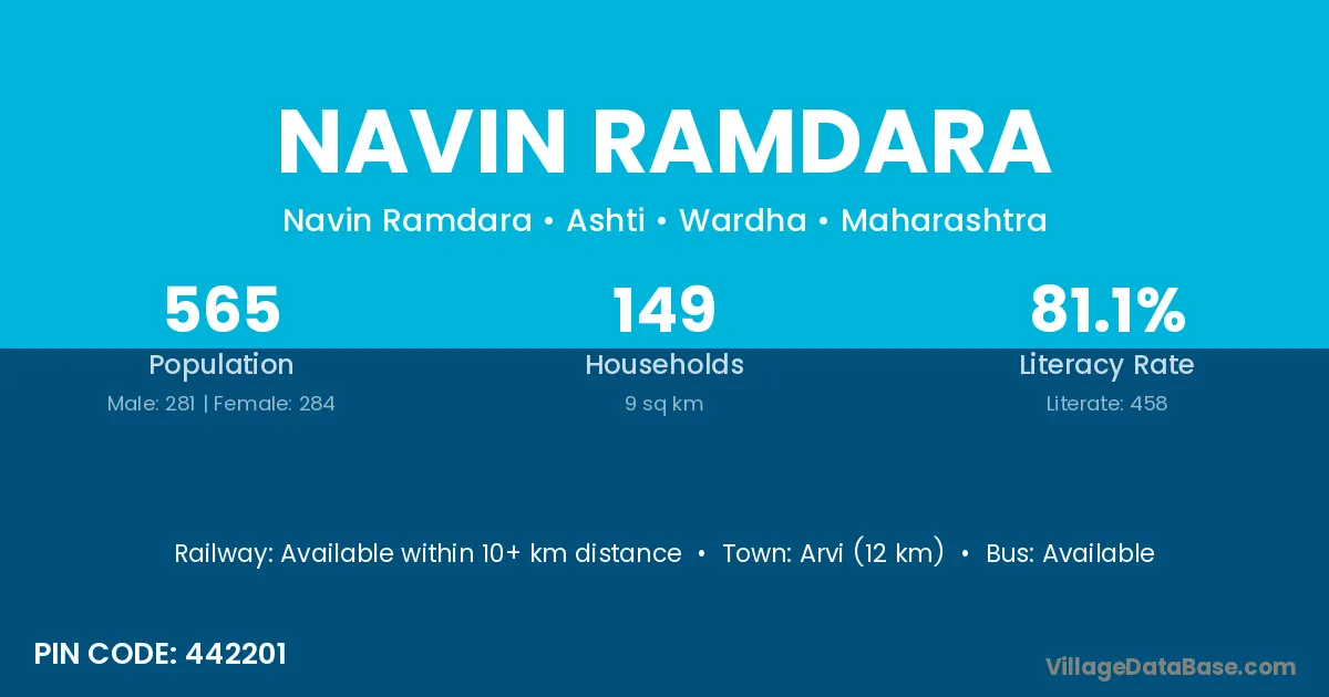 Arvi (12 km) is the nearest town to Navin Ramdara village for major economic activities and is located approximately 12 km away.