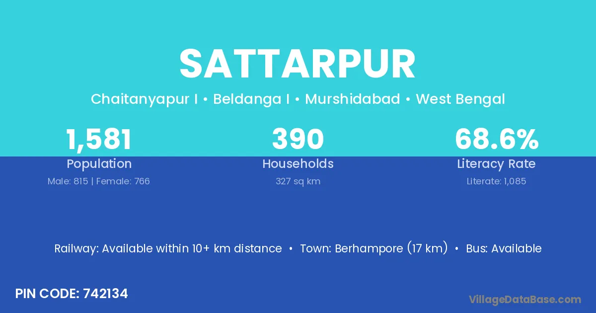 The literacy rate of Sattarpur village is 66.51%. Male literacy stands at 72.86% and female literacy at 60.37%.