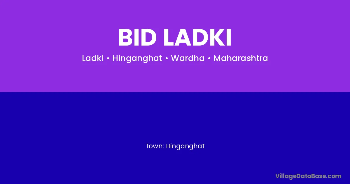 Bid Ladki village is located in the Hinganghat Tehsil of the Wardha district in Maharashtra .