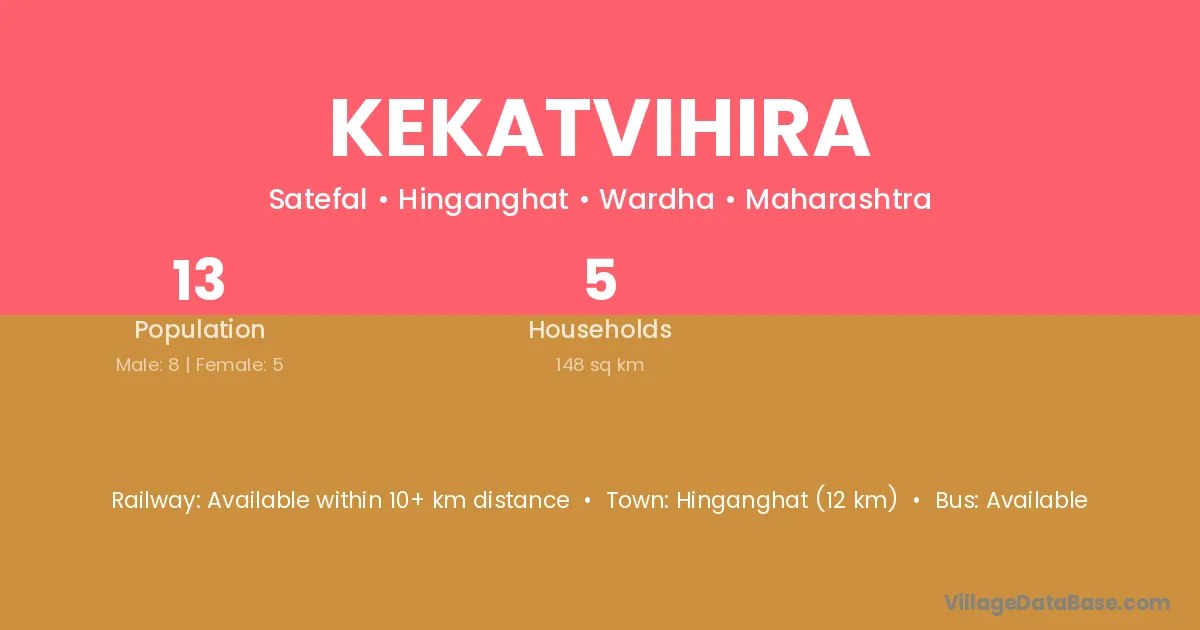 Hinganghat (12 km) is the nearest town to Kekatvihira village for major economic activities and is located approximately 12 km away.