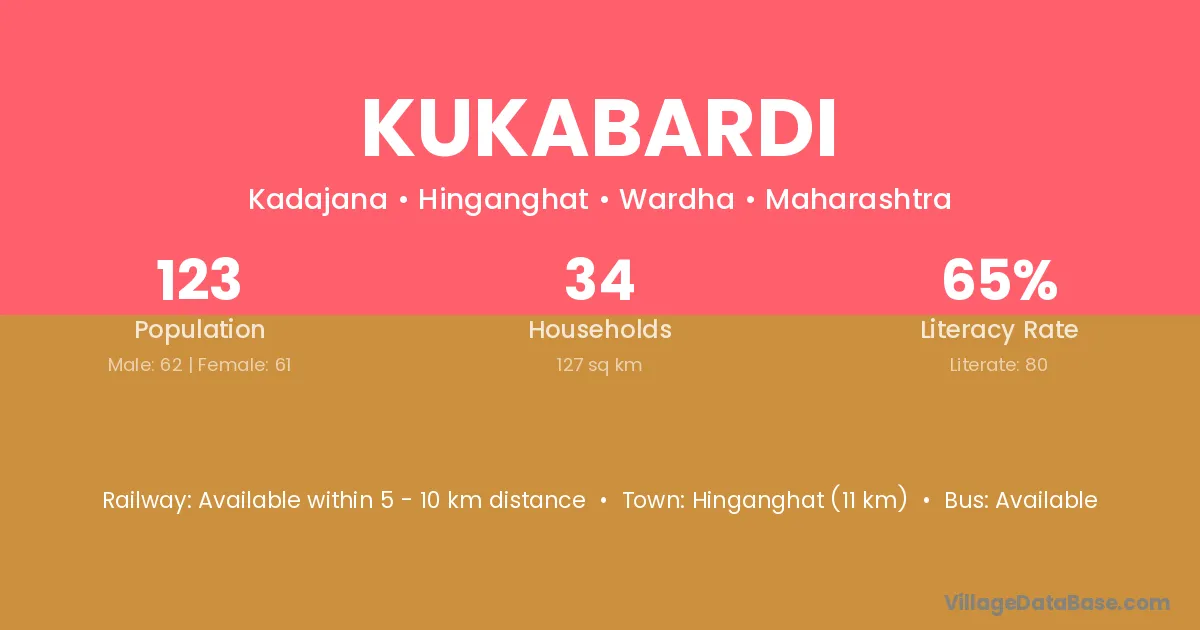 Hinganghat (11 km) is the nearest town to Kukabardi village for major economic activities and is located approximately 11 km away.