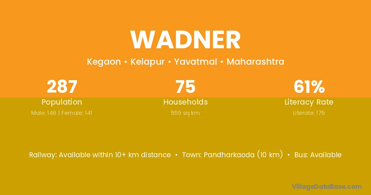 Hinganghat (22 km) is the nearest town to Wadner village for major economic activities and is located approximately 22 km away.