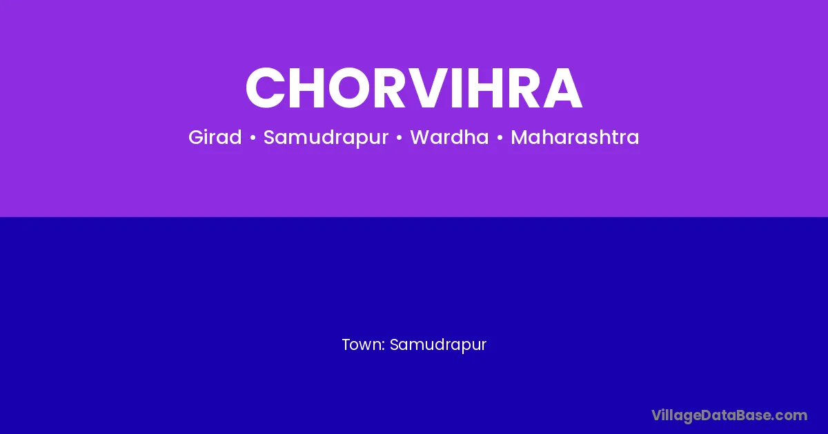 Samudrapur is the nearest town to Chorvihra village for major economic activities