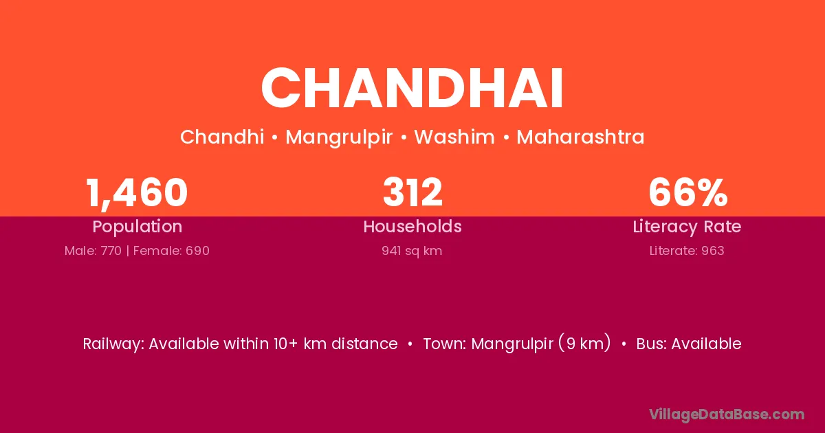 Karanja (11 km) is the nearest town to Chandhai village for major economic activities and is located approximately 11 km away.