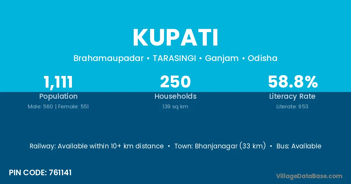 Kupati village has a total population of 978 people, of which 509 are males and 469 are females.