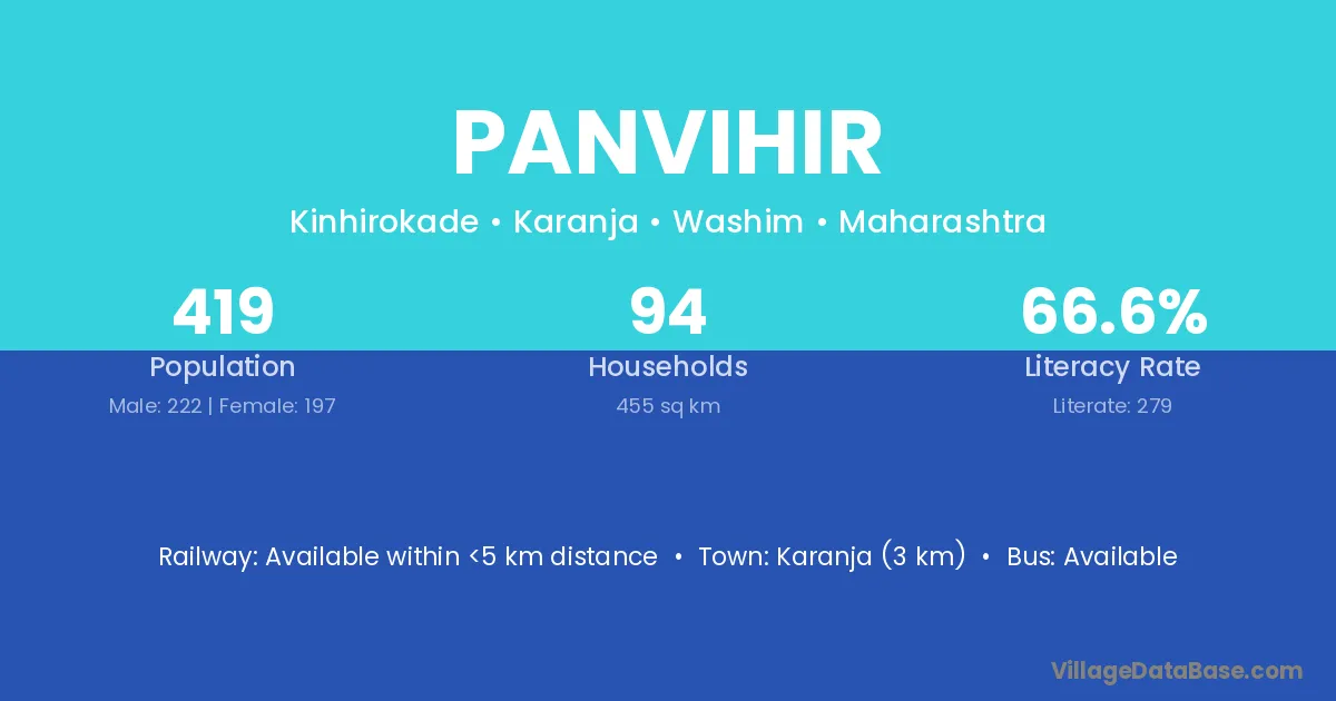 Karanja (3 km) is the nearest town to Panvihir village for major economic activities and is located approximately 3 km away.