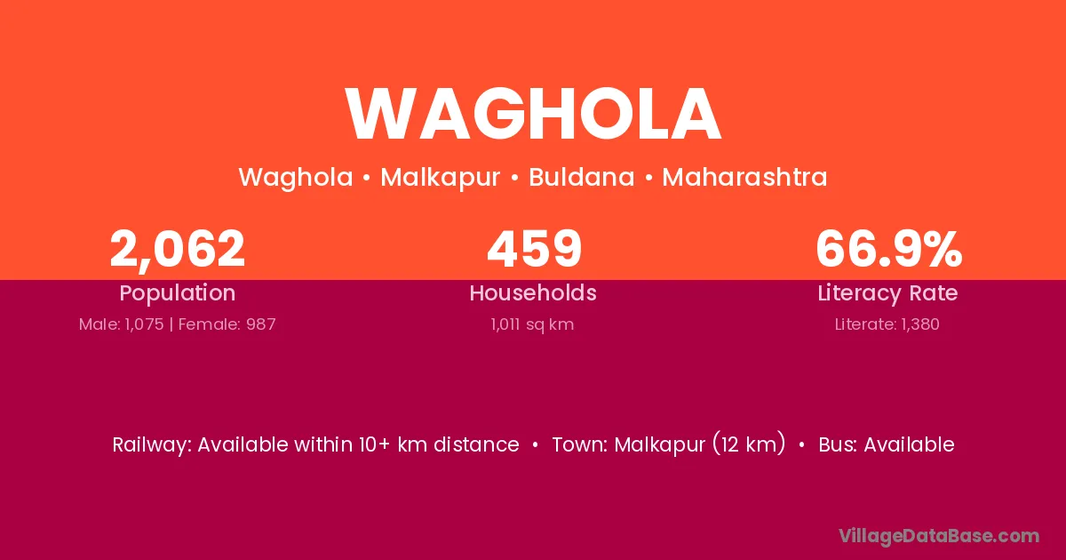 Karanja (9 km) is the nearest town to Waghola village for major economic activities and is located approximately 9 km away.