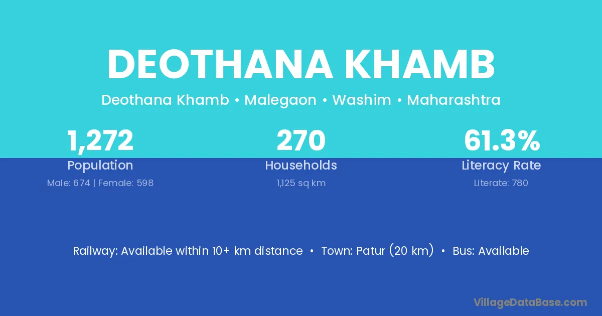 Patur (20 km) is the nearest town to Deothana Khamb village for major economic activities and is located approximately 20 km away.