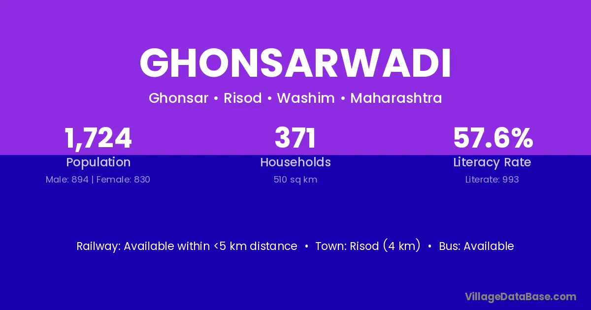 Risod (4 km) is the nearest town to Ghonsarwadi village for major economic activities and is located approximately 4 km away.