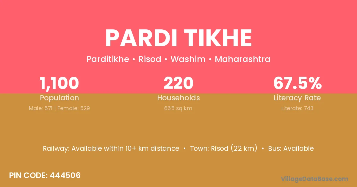 Risod (22 km) is the nearest town to Pardi Tikhe village for major economic activities and is located approximately 22 km away.