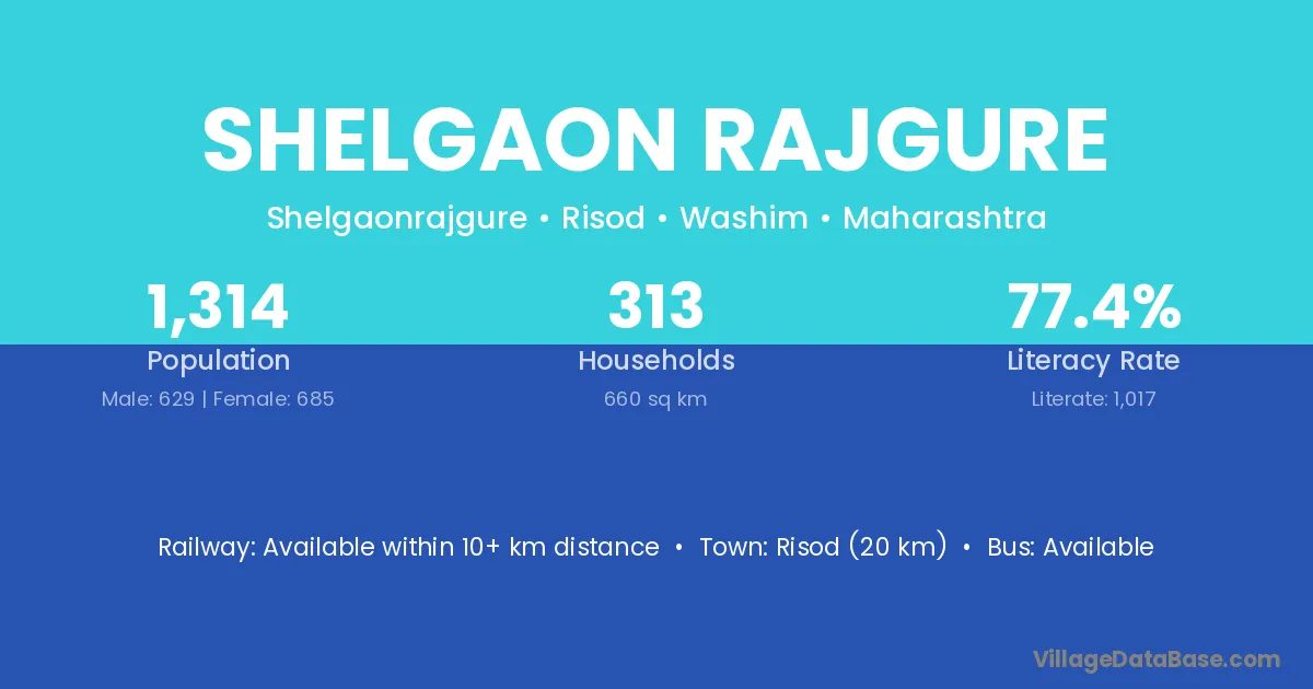 Risod (20 km) is the nearest town to Shelgaon Rajgure village for major economic activities and is located approximately 20 km away.
