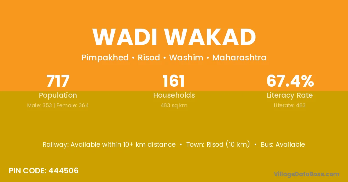 Risod (10 km) is the nearest town to Wadi Wakad village for major economic activities and is located approximately 10 km away.