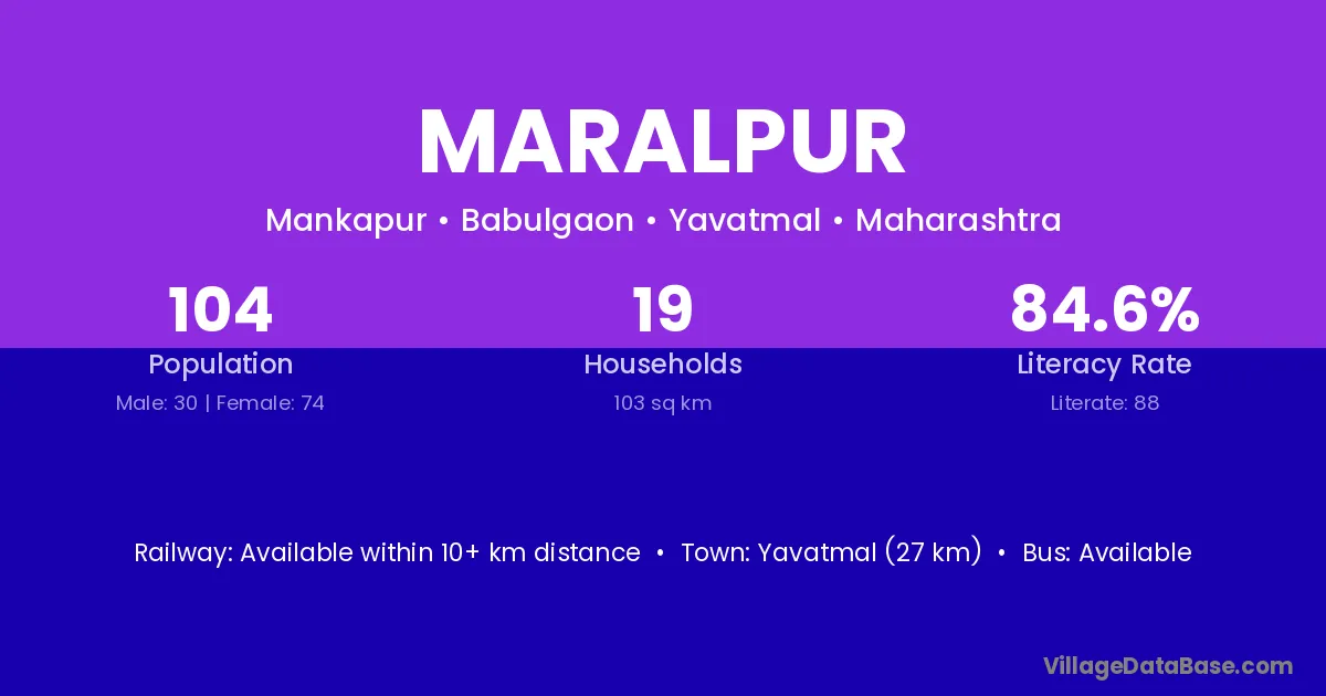 Yavatmal (27 km) is the nearest town to Maralpur village for major economic activities and is located approximately 27 km away.