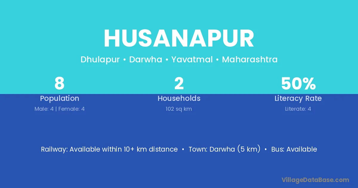 Darwha (5 km) is the nearest town to Husanapur village for major economic activities and is located approximately 5 km away.