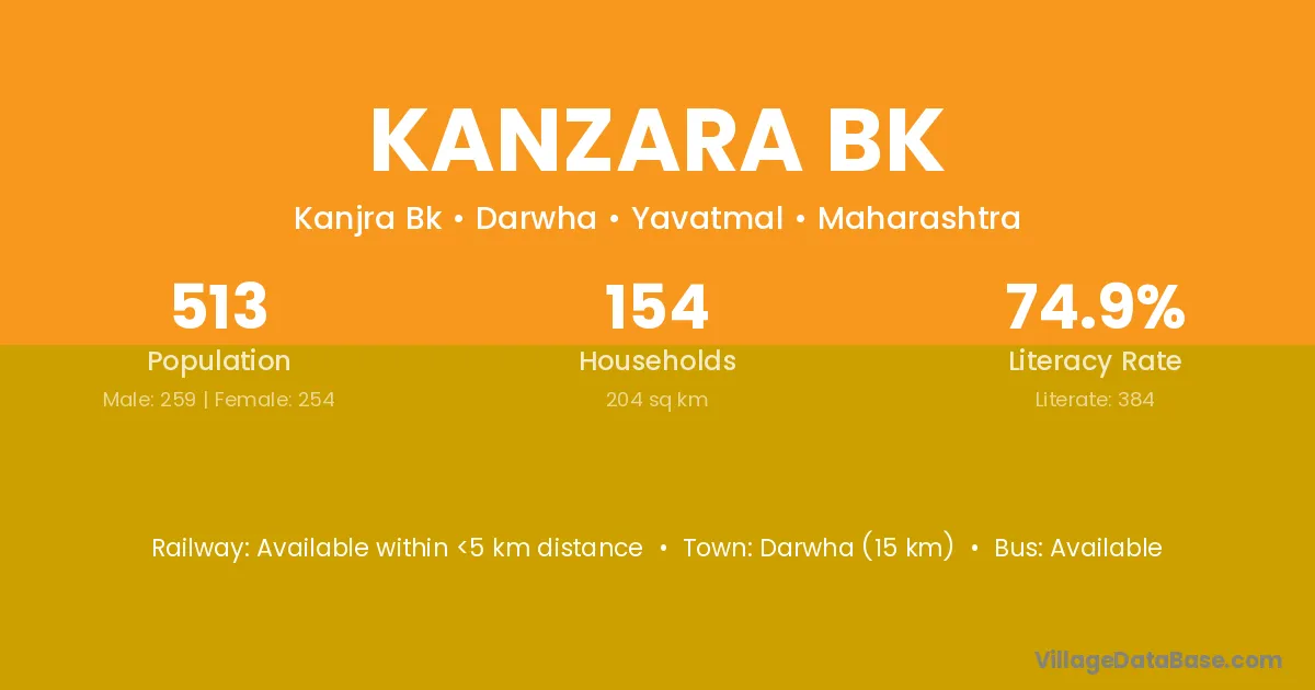 Kanzara Bk village has a total population of 513 people, of which 259 are males and 254 are females.