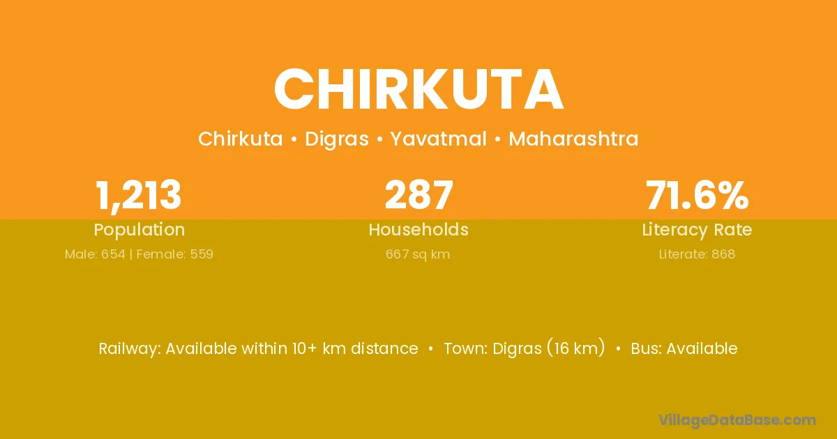 Digras (16 km) is the nearest town to Chirkuta village for major economic activities and is located approximately 16 km away.