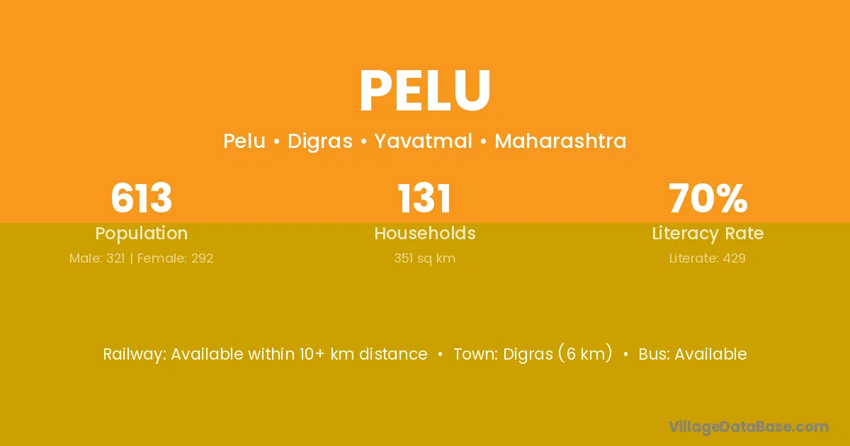 Digras (6 km) is the nearest town to Pelu village for major economic activities and is located approximately 6 km away.