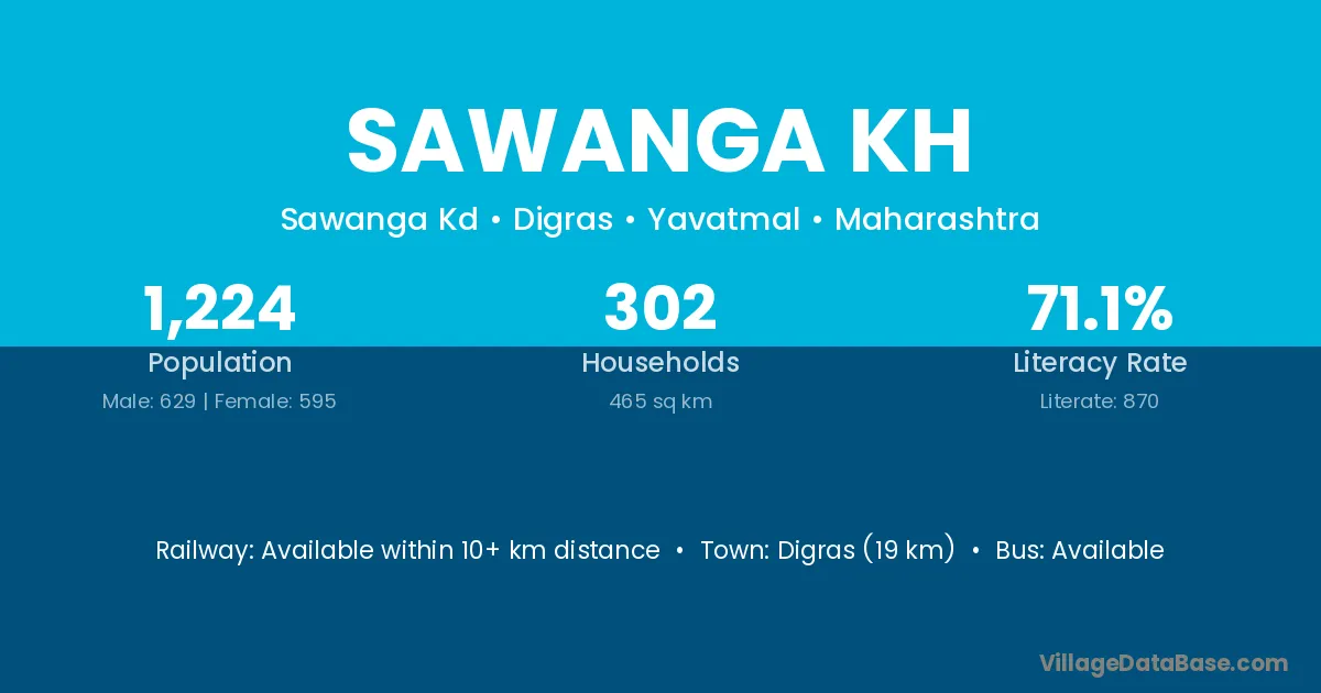 Sawanga Kh village has a total population of 1,224 people, of which 629 are males and 595 are females.