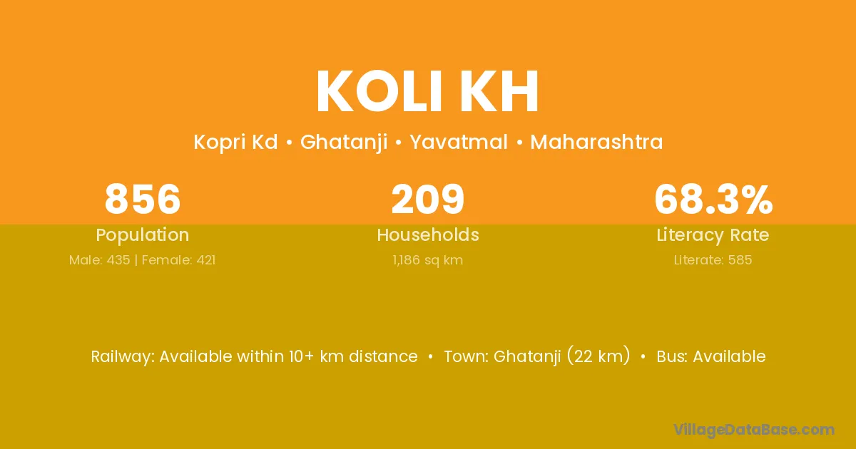 Ghatanji (22 km) is the nearest town to Koli Kh village for major economic activities and is located approximately 22 km away.