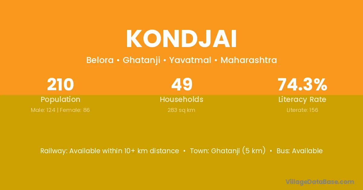 Ghatanji (5 km) is the nearest town to Kondjai village for major economic activities and is located approximately 5 km away.