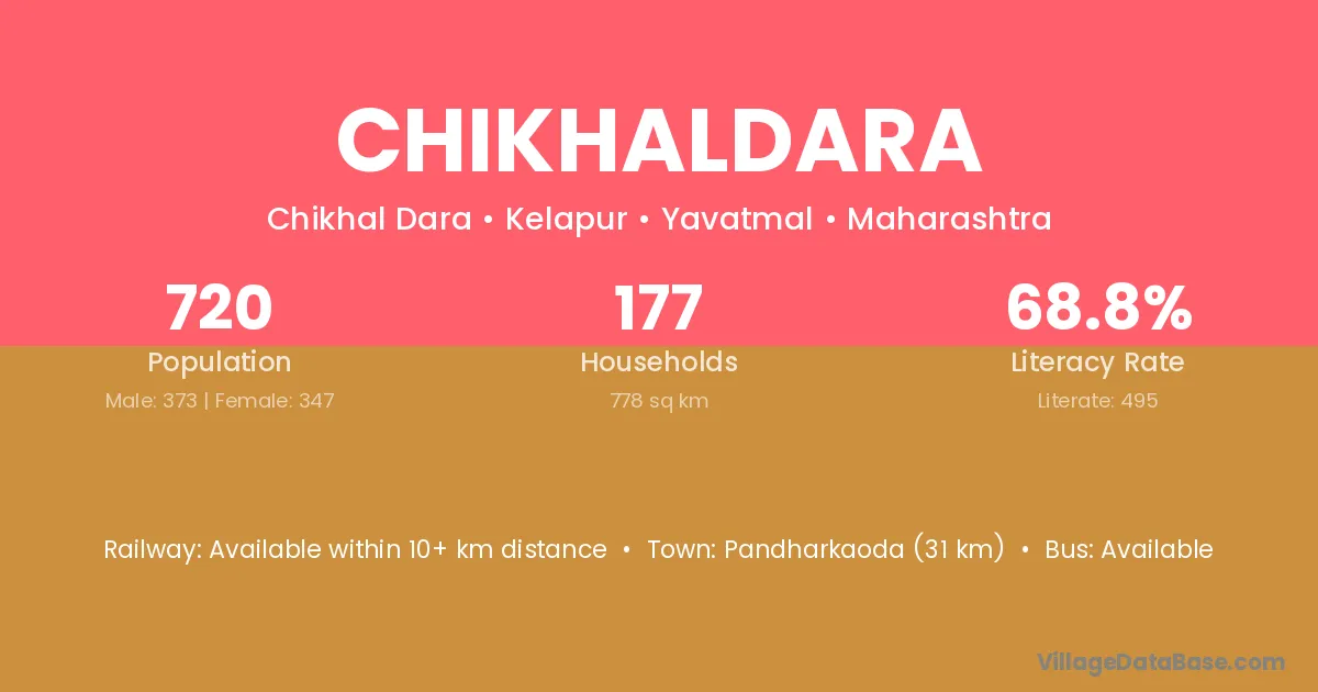 Pandharkaoda (31 km) is the nearest town to Chikhaldara village for major economic activities and is located approximately 31 km away.