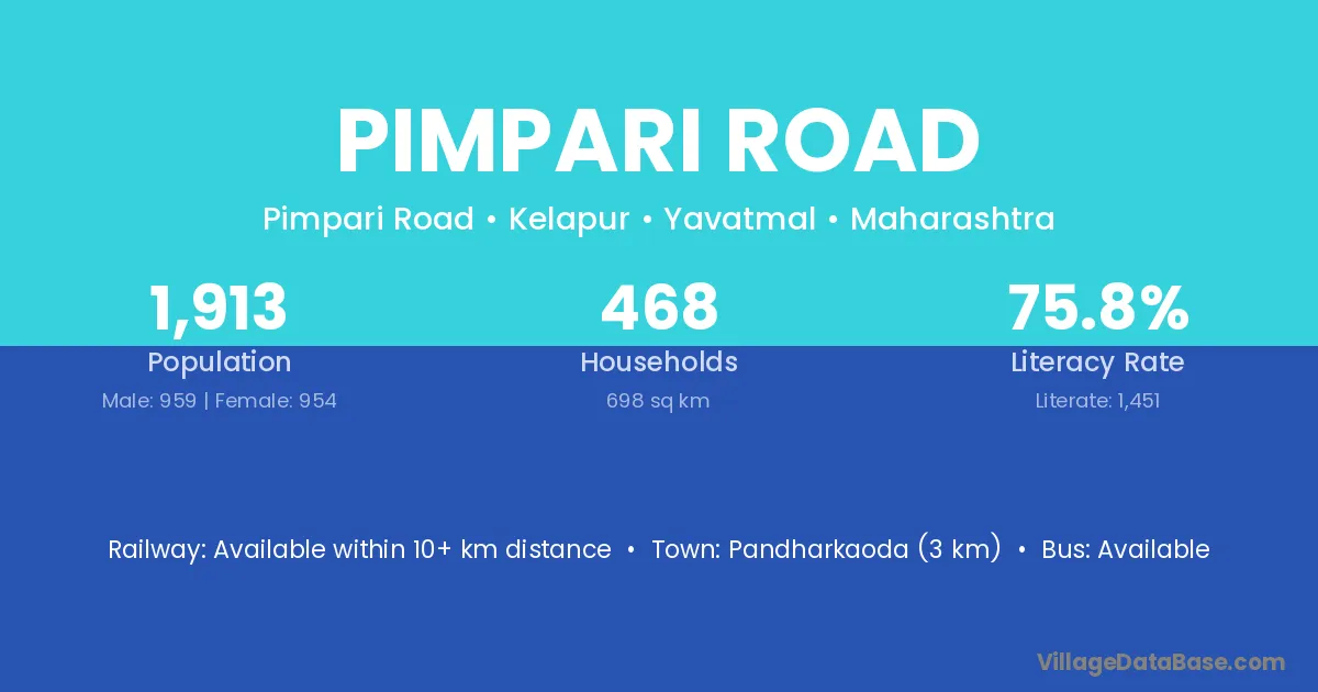 Pandharkaoda (3 km) is the nearest town to Pimpari Road village for major economic activities and is located approximately 3 km away.