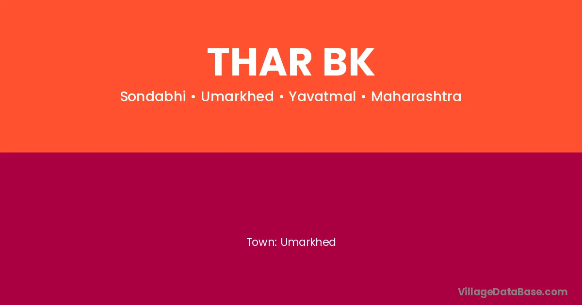 Pusad (39 km) is the nearest town to Thar Bk village for major economic activities and is located approximately 39 km away.