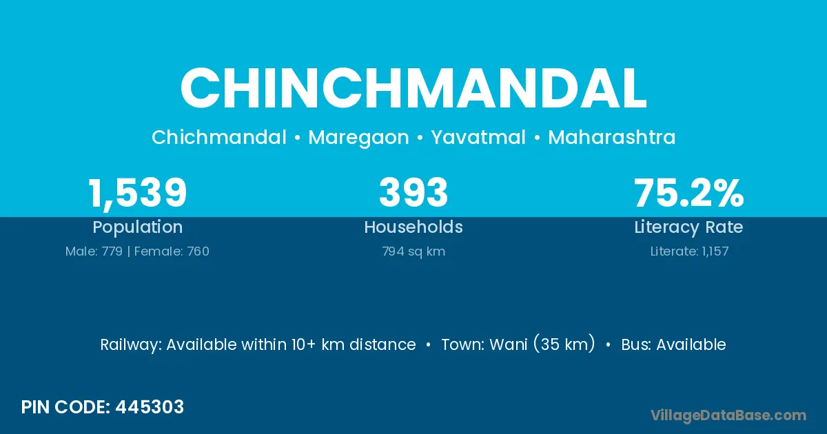 Wani (35 km) is the nearest town to Chinchmandal village for major economic activities and is located approximately 35 km away.