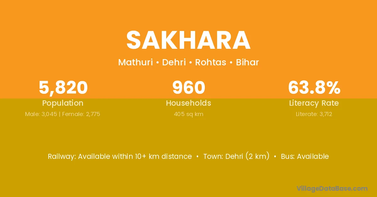 The literacy rate of Sakhara village is 75.63%. Male literacy stands at 74.64% and female literacy at 76.60%.