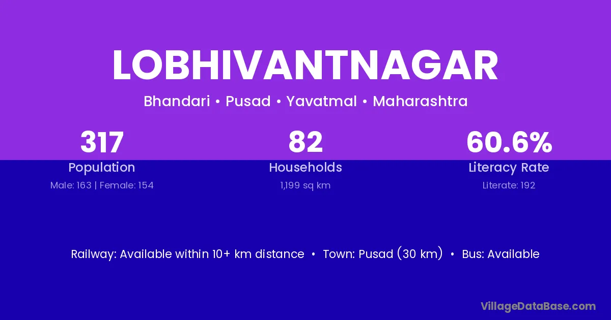 Pusad (30 km) is the nearest town to Lobhivantnagar village for major economic activities and is located approximately 30 km away.