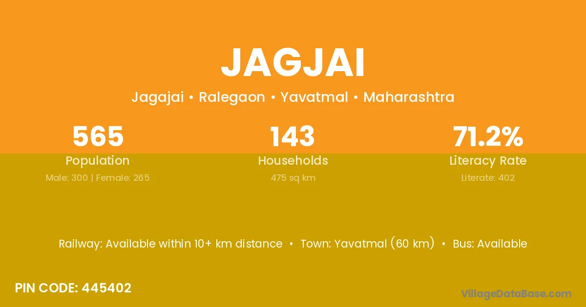 Yavatmal (60 km) is the nearest town to Jagjai village for major economic activities and is located approximately 60 km away.
