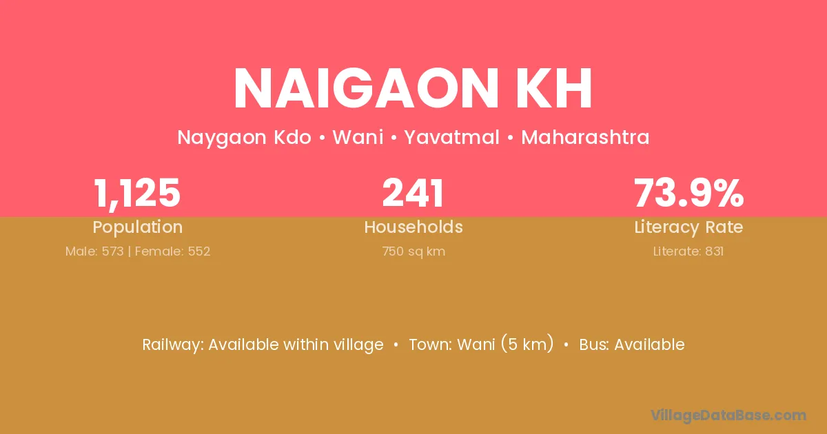 Wani (5 km) is the nearest town to Naigaon Kh village for major economic activities and is located approximately 5 km away.