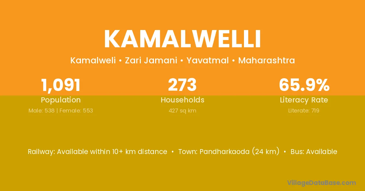Pandharkaoda (24 km) is the nearest town to Kamalwelli village for major economic activities and is located approximately 24 km away.