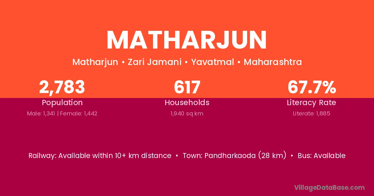 Pandharkaoda (28 km) is the nearest town to Matharjun village for major economic activities and is located approximately 28 km away.