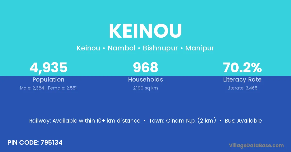 Oinam N.p. (2 km) is the nearest town to Keinou village for major economic activities and is located approximately 2 km away.