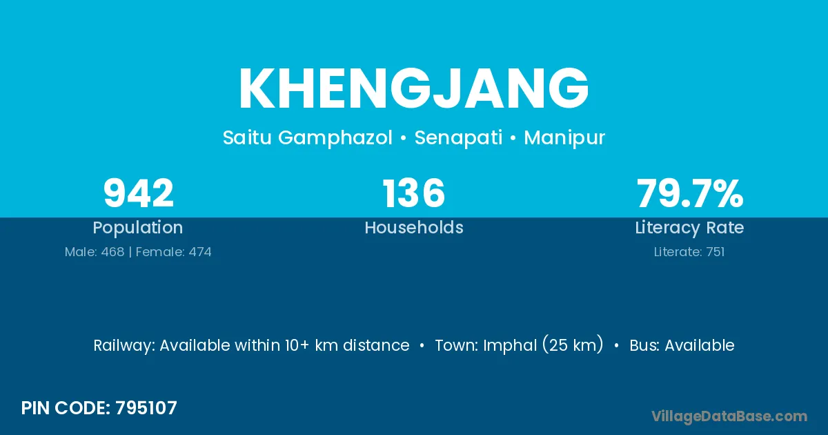 Sugnu (21 km) is the nearest town to Khengjang village for major economic activities and is located approximately 21 km away.