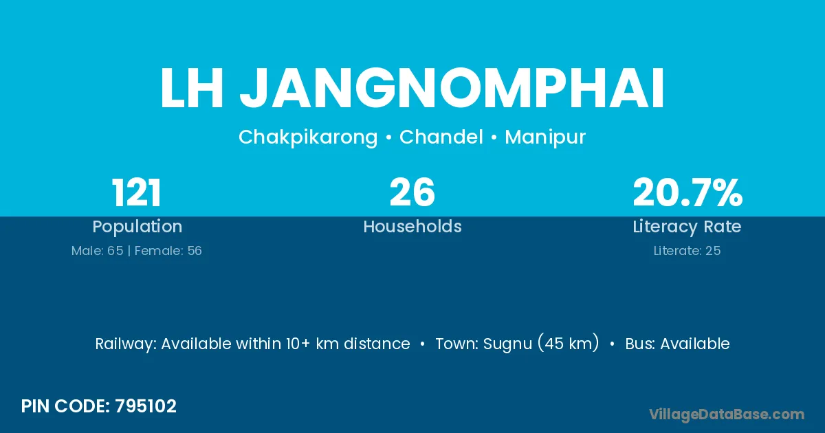 Sugnu (45 km) is the nearest town to Lh Jangnomphai village for major economic activities and is located approximately 45 km away.
