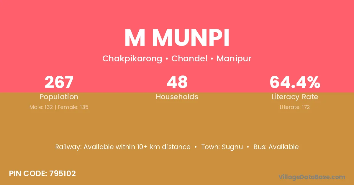 M Munpi village has a total population of 267 people, of which 132 are males and 135 are females.