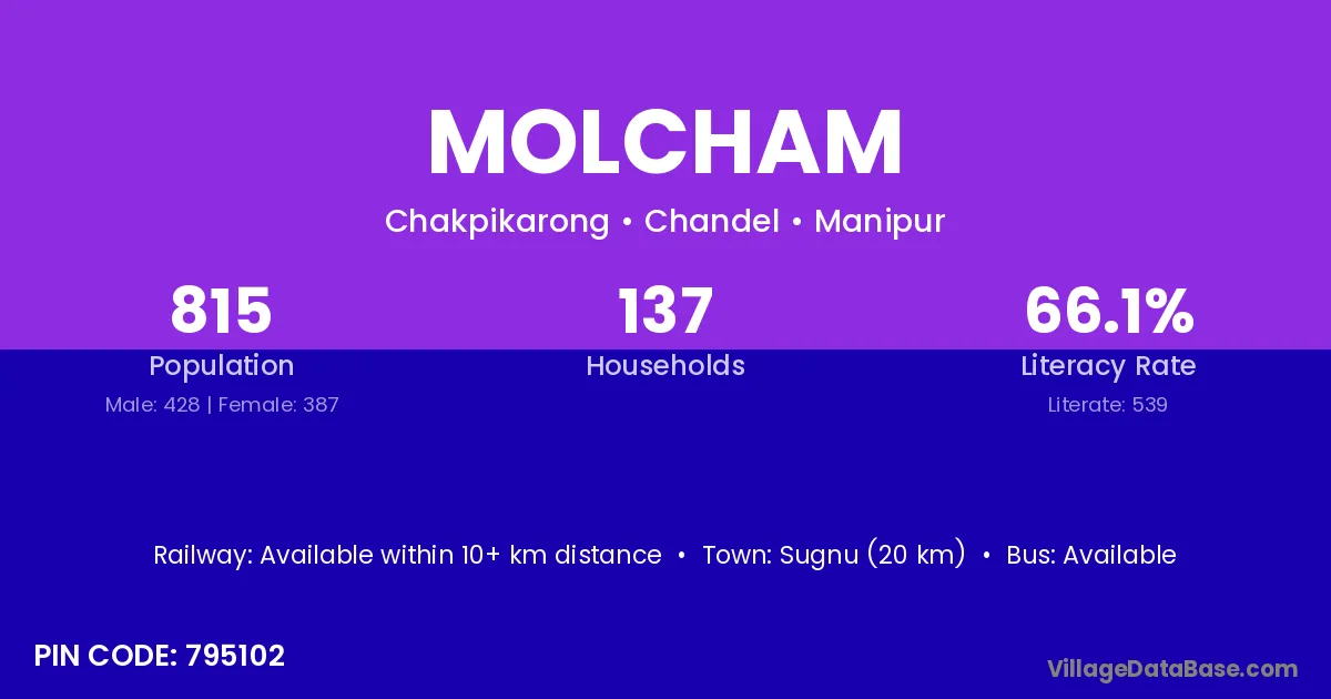 According to Census 2011 information, the village code of Molcham village is 795102.