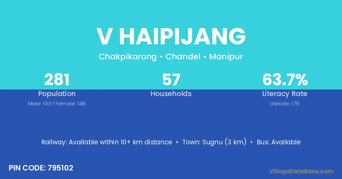 Sugnu (3 km) is the nearest town to V Haipijang village for major economic activities and is located approximately 3 km away.