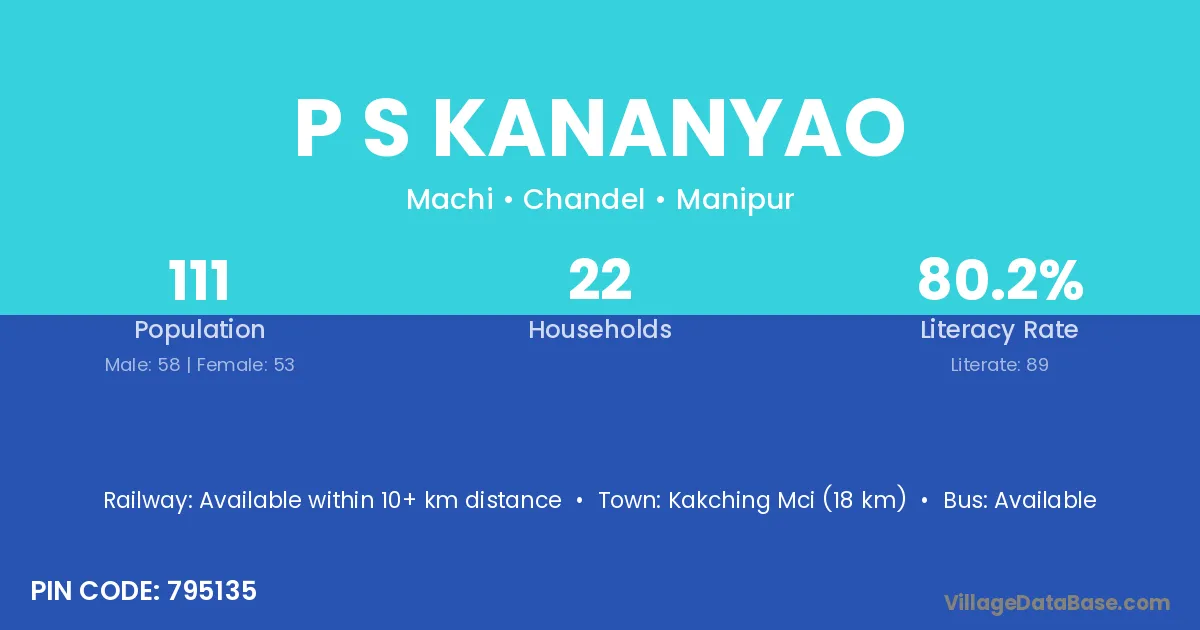 Kakching Mci (18 km) is the nearest town to P S Kananyao village for major economic activities and is located approximately 18 km away.