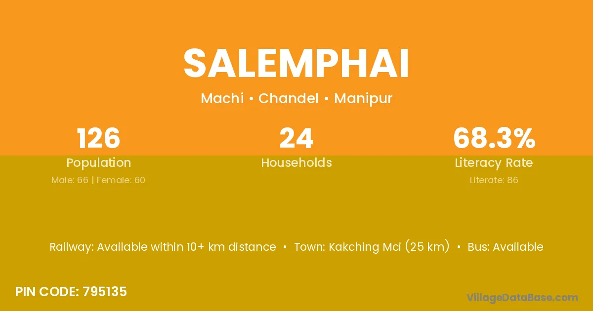 Salemphai village has a total population of 126 people, of which 66 are males and 60 are females.