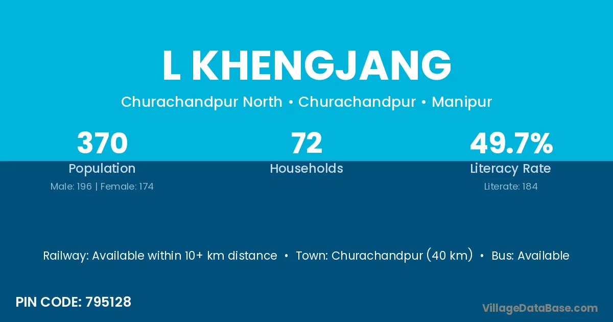 Churachandpur (40 km) is the nearest town to L Khengjang village for major economic activities and is located approximately 40 km away.