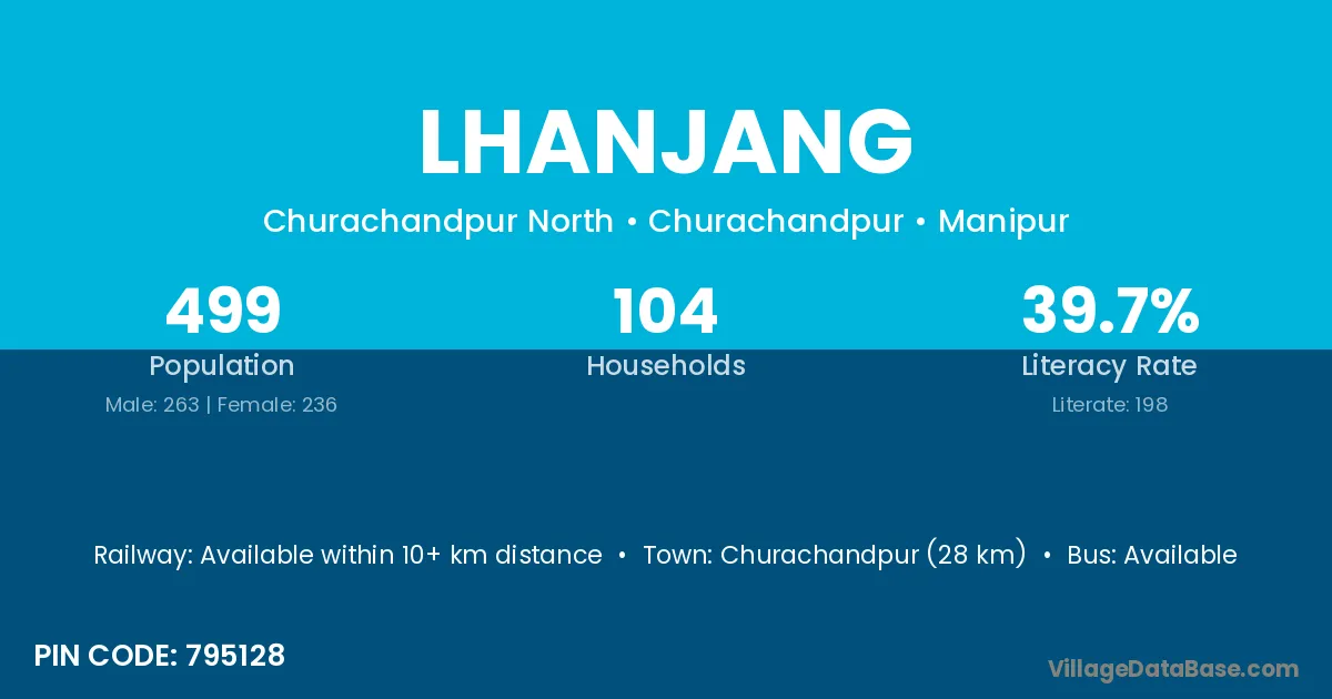 Churachandpur (28 km) is the nearest town to Lhanjang village for major economic activities and is located approximately 28 km away.